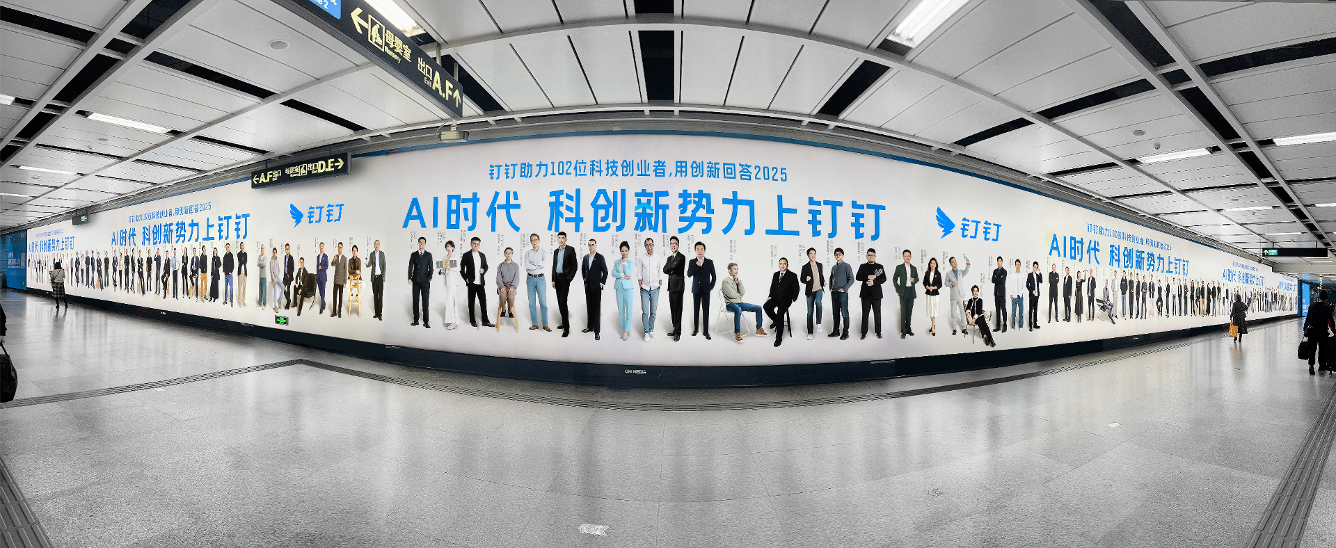 钉钉携手102位科技新势力创业者,在北京、深圳、广州等城市的机场/地铁巨幅广告屏上集体亮相,共同描绘AI时代下企业数智化全新图景。